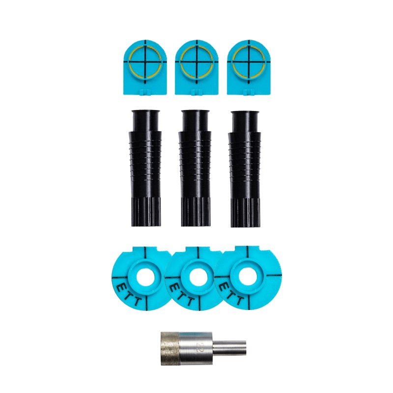 Obsah sady:- vešiaky- šablóny pre vŕtanie- šablóny pre zníženie obkladov, ktorý slúži ako kryt vešiakov - korunka s priemerom 22mm a hrúbkou steny 1mm