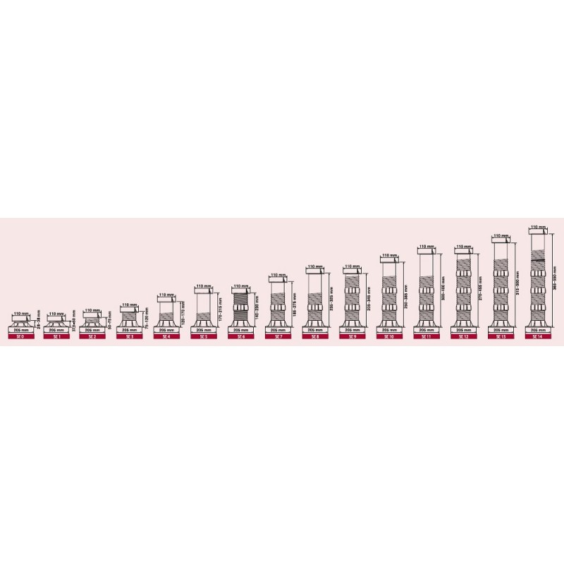 Rektifikačná podložka pod drevené aj WPC terasové dosky a rošt ETERNO SEW3 so samonivelačnou hlavou, nastaviteľná v rozsahu 75 – 120 mm.